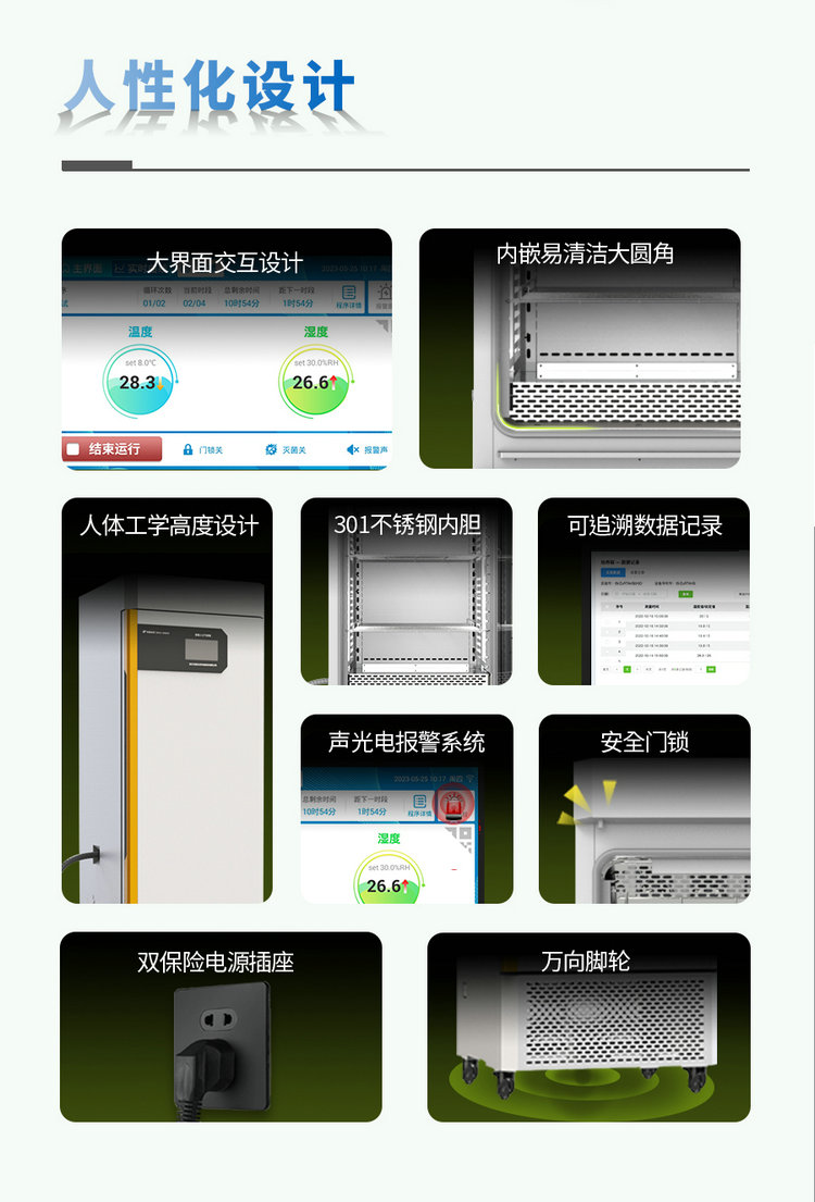 電磁鎖設計,保證樣品安全:標配電磁門鎖,可設置密碼開關箱門,確保試驗樣品安全。